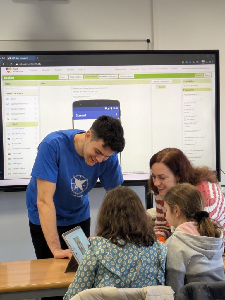 Este curso, estamos participando en el programa TechnovationGirls, mentorizando cada semana a grupos de niñas entre 8 y 18 años para que desarrollen su propia aplicación como producto final. Este curso estamos dando un paso más y colaboramos en las formaciones que se dan los sábados.