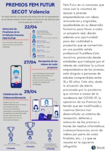 En la cuarta edición de los premios FEM-FUTUR FP organizada por SECOT Valencia y financiada por Caixa Popular, las alumnas de #2AVGE han obtenido el segundo premio con su proyecto “C-Work Rooms”, un hostel de cápsulas con cafetería-restaurante y zona de #coworking . Queremos felicitaros por este premio 🥈 y agradecer el esfuerzo del profesorado implicado.