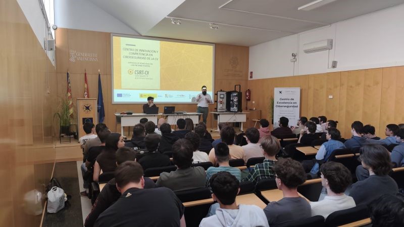 ¡Llenazo absoluto en el salón de actos del CIPFP Mislata tras la visita del equipo de ciberseguridad industrial del CSIRT-CV!