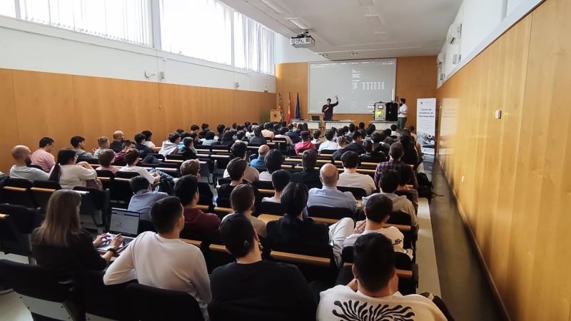 El alumnado de la familia profesional de Informática y Comunicaciones demostró un gran interés por la charla y prueba de ello fue que llenamos el salón de actos. Agradecer también a los alumnos del máster de ciberseguridad hacer el esfuerzo de venir por la mañana, ya que el máster se imparte por las tardes.
