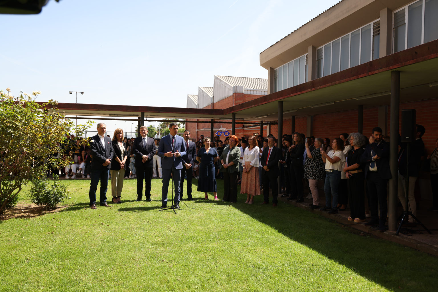Durante la visita, Pedro Sánchez aprovechó para hacer unas declaraciones en nuestro jardín ante la prensa y anunció que el Gobierno va a realizar una inversión histórica de 1.200 millones de euros para la FP. Se trata de una noticia excelente, ya que esta inyección económica ayudará a miles de estudiantes a aprender una profesión y a conseguir una mejor inserción en el mundo laboral.
